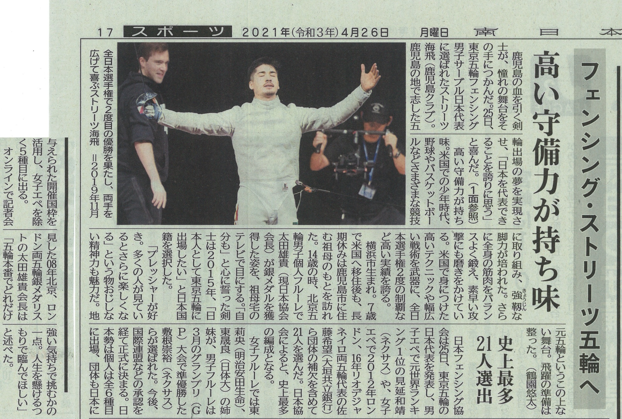 2018年日本に帰国し、2021年4月オリンピック出場が決まった。