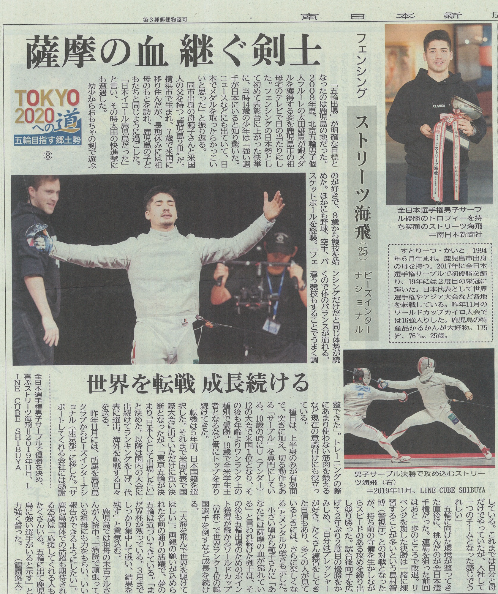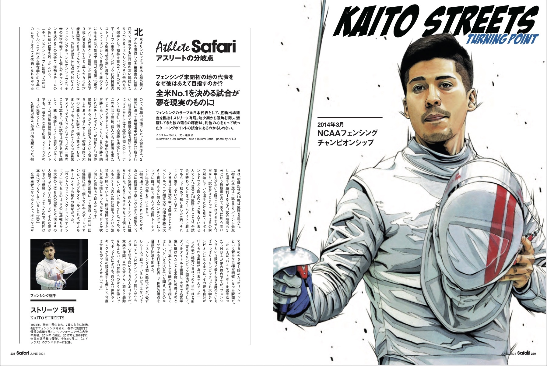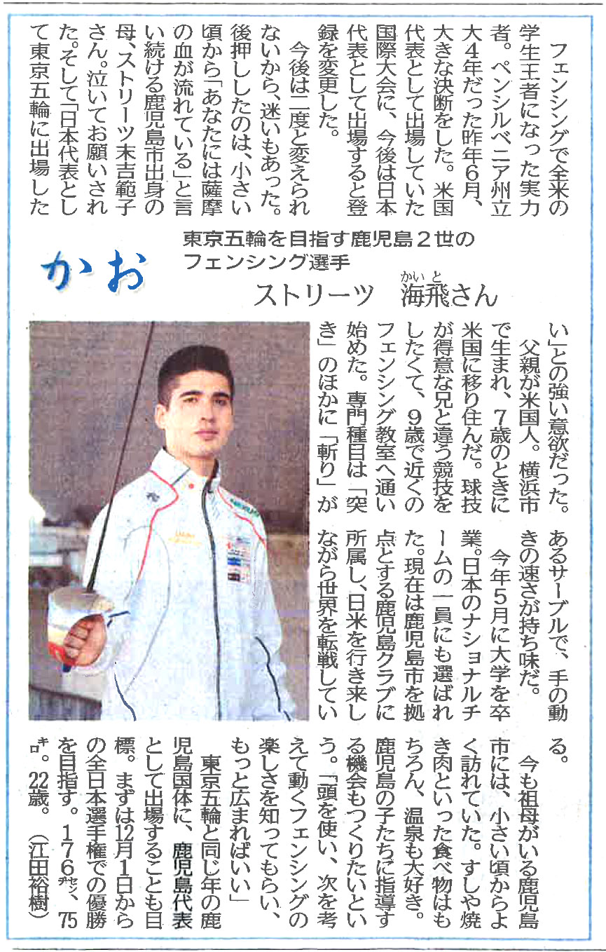 日本に生まれてアメリカで育ち、剣に憧れてフェンシングの実力をつけた。いま、日本代表としてストリーツ海飛は東京オリンピックに向けてまっすぐ進んでいる。