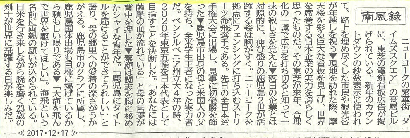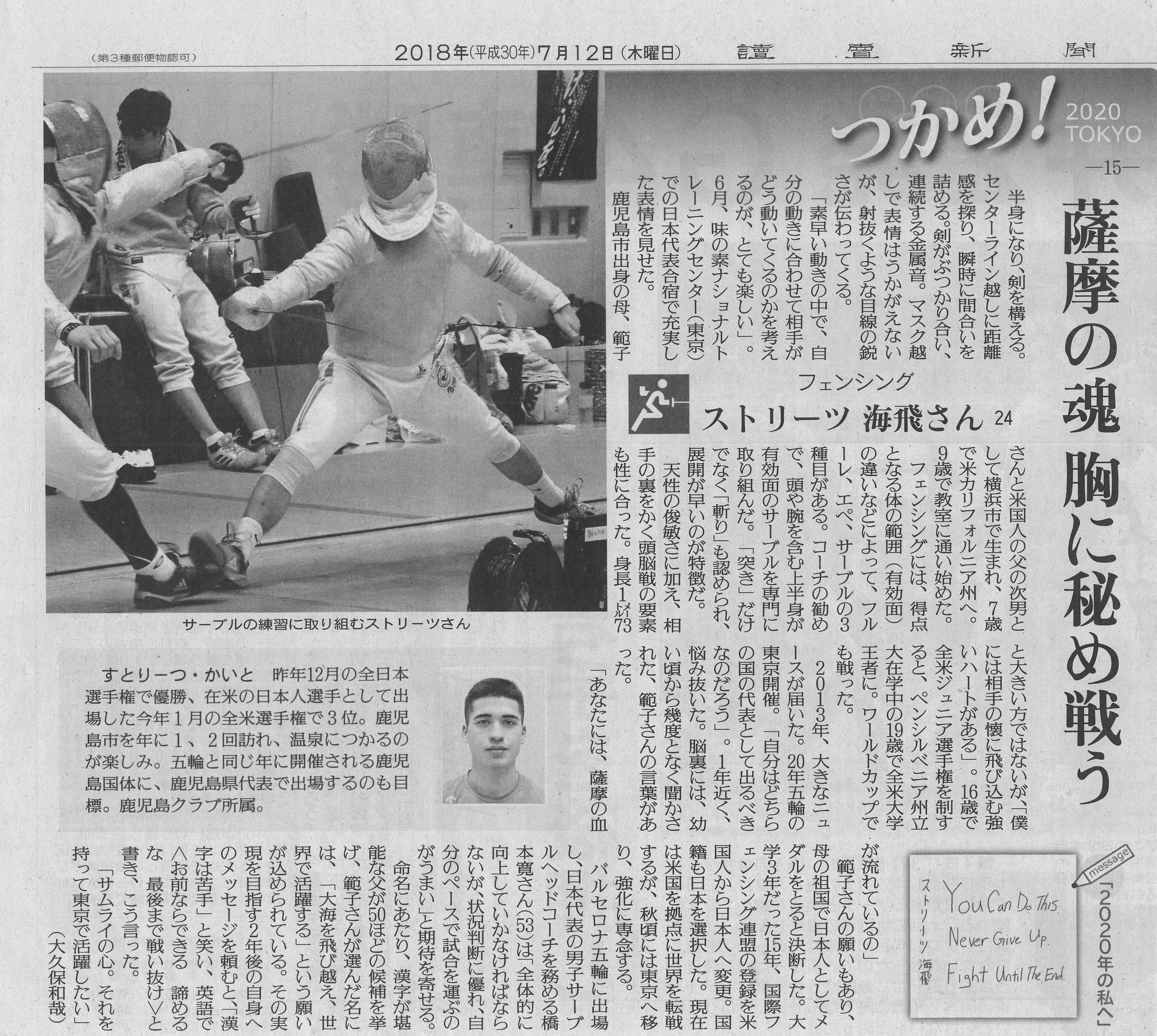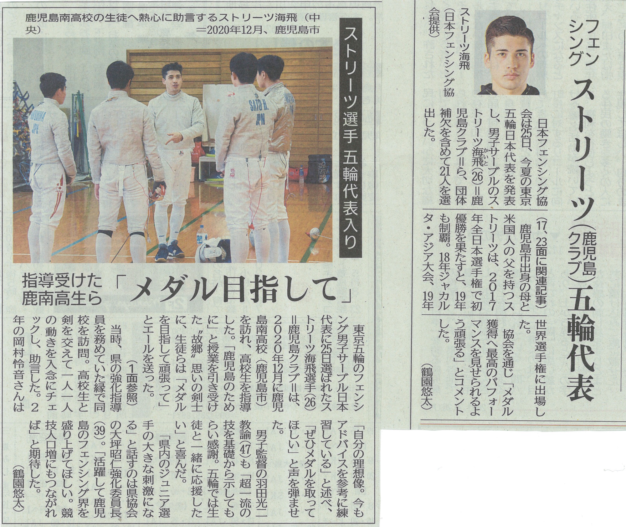 日本に生まれてアメリカで育ち、剣に憧れてフェンシングの実力をつけた。いま、日本代表としてストリーツ海飛は東京オリンピックに向けてまっすぐ進んでいる。